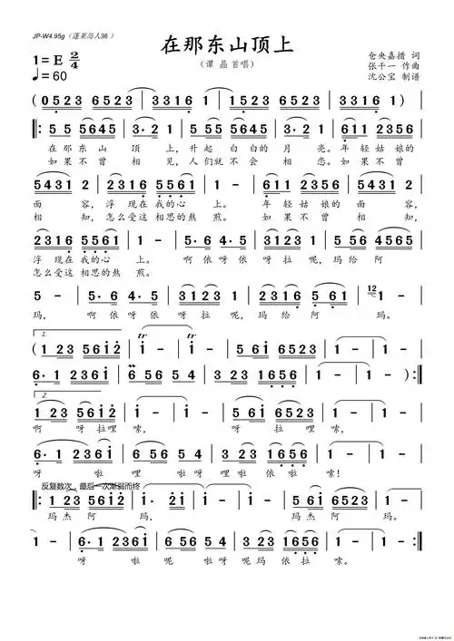 在那东山顶上 #在那东山顶上简谱 音乐歌谱#经典老歌 谭晶