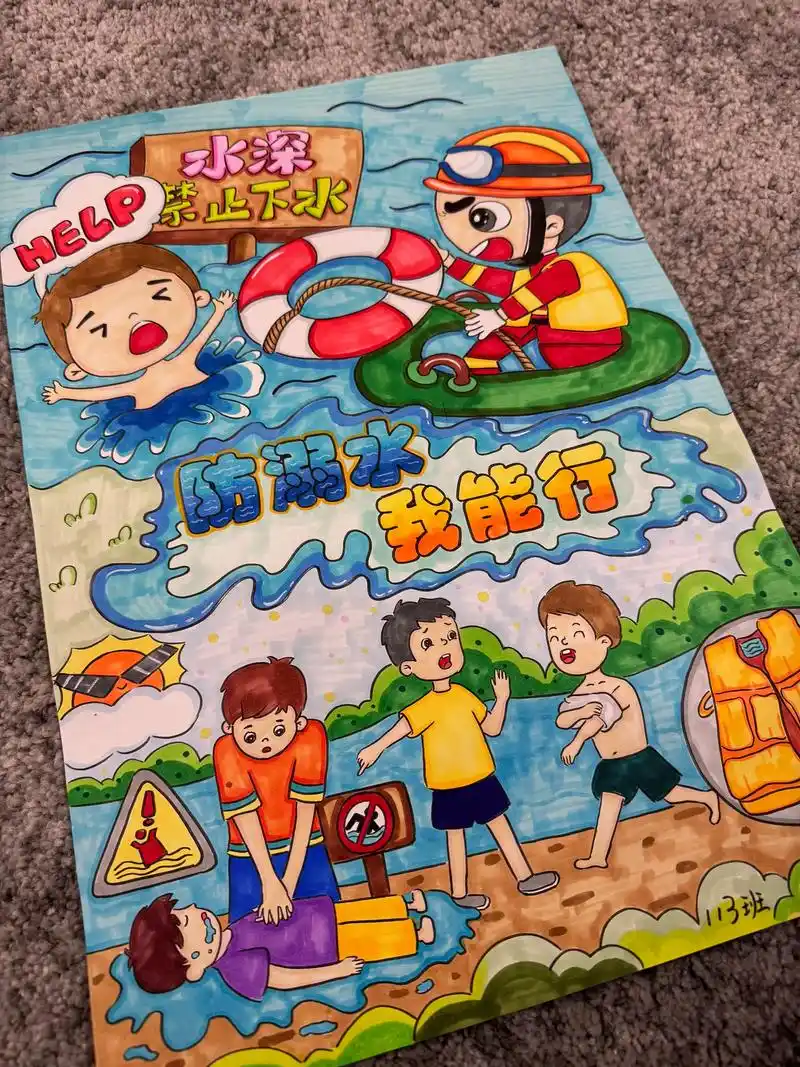 防溺水是生命安全的重要一环,通过艺术作品的展示